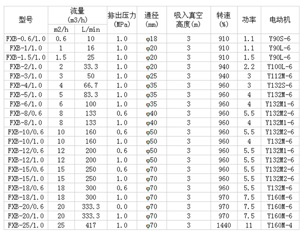 FXB型系列不锈钢齿轮泵性能参数表